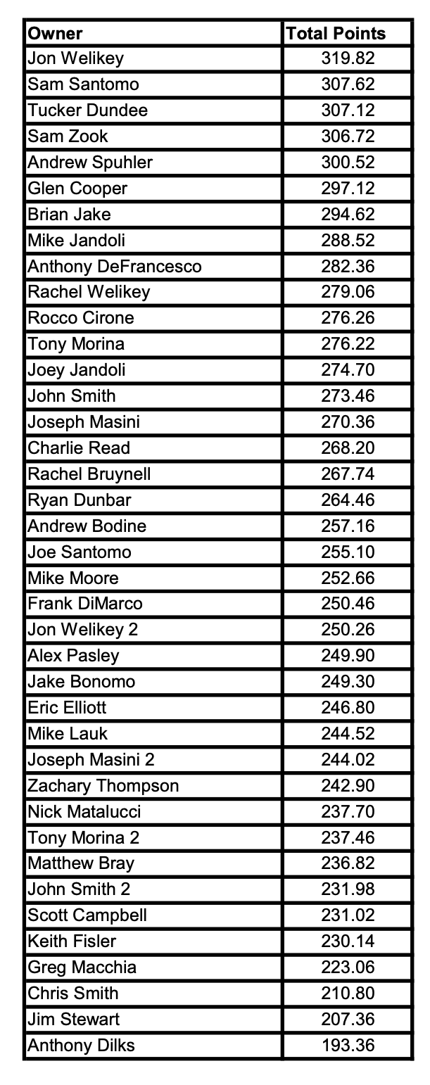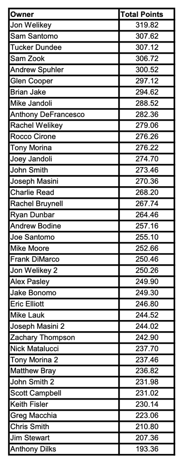 NFL Fantasy Playoff Standings